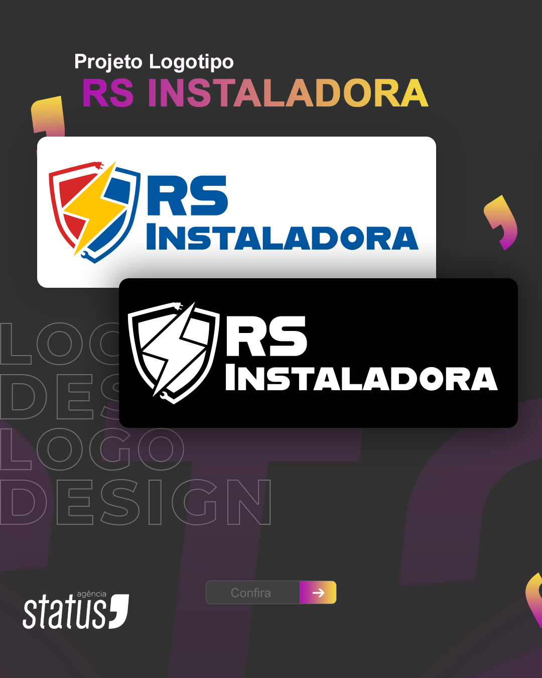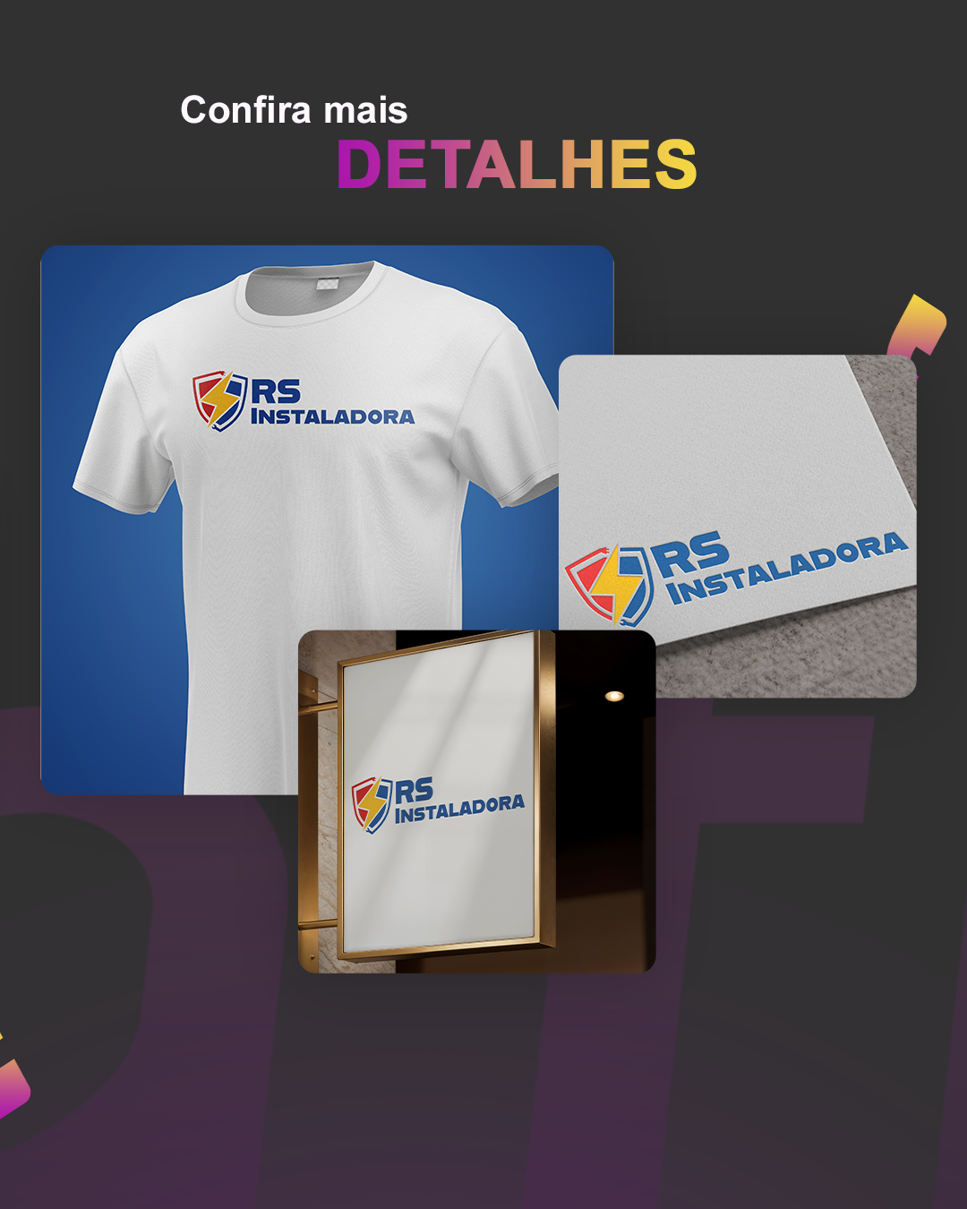 A identidade visual da RS Instaladora combina força, modernidade e clareza no segmento de instalações elétricas, hidráulicas e em ar-condicionado.